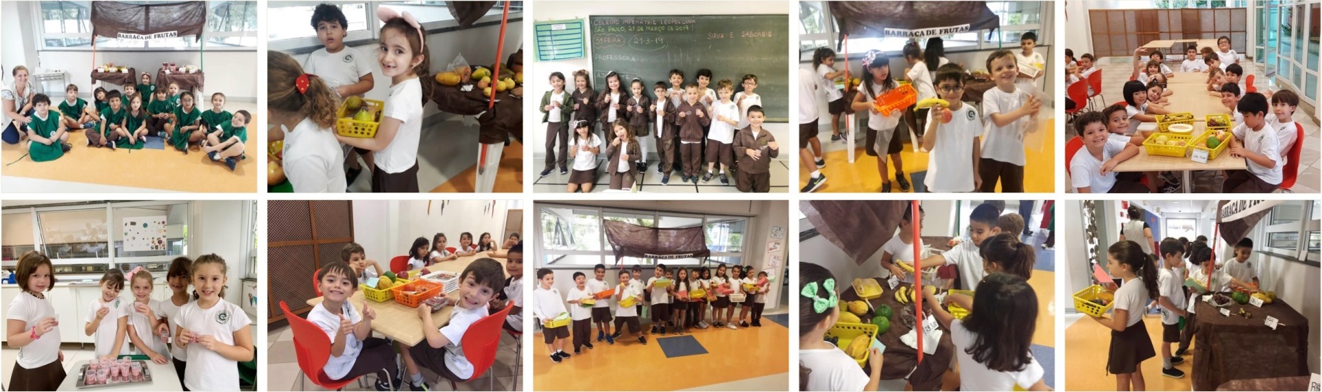 Os 1 os anos receberam o outono com muitas novidades e novas experiências. Com as frutas trazidas pelas crianças, foi montada uma barraca de feira, que foi visitada por todos e na qual os alunos puderam fazer compras. Escolheram as frutas, colocaram-nas em cestas e efetuaram o pagamento. Nessa dinâmica, foram contemplados conteúdos variados, como sistema monetário, vendas, alimentação saudável, características e benefícios das frutas, escrita de listas e receitas. Em um segundo momento, os educandos foram conduzidos à “Cozinha Experimental”, onde puderam observar o preparo do “Danoninho feito de inhame e morangos”. Exploraram o inhame cru e cozido e também suas propriedades. Para completar o acolhimento à nova estação, houve um piquenique, no qual as crianças tiveram a oportunidade de degustar frutas variadas e, mais tarde, apreciaram, animados, o “Danoninho” gelado. Assim, o outono começou a desenhar sua nova cor, repleto de novas vivências, e foi gratificante ver que os alunos participaram, com entusiasmo, de todas as atividades propostas. Professoras: Claudia, Paula, Jéssica, Márcia e Rafaella.