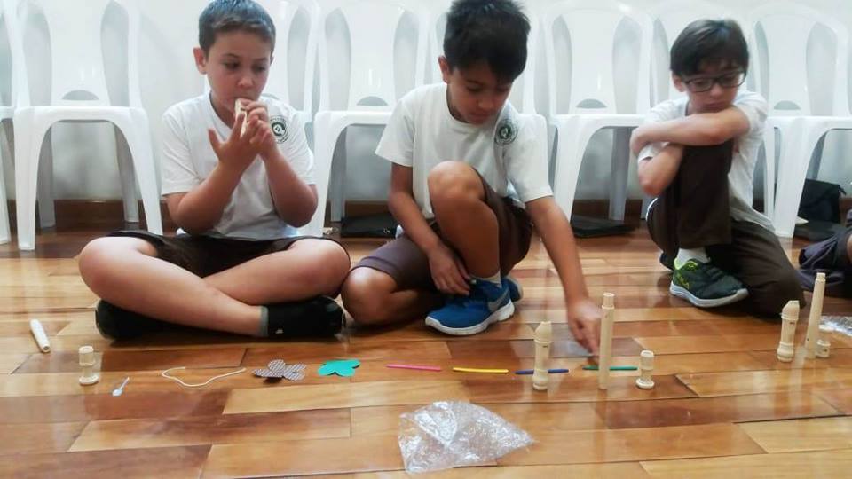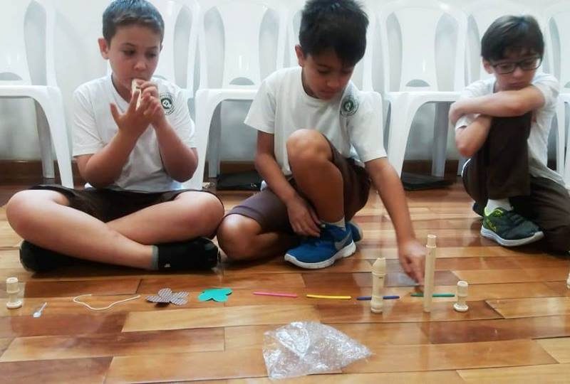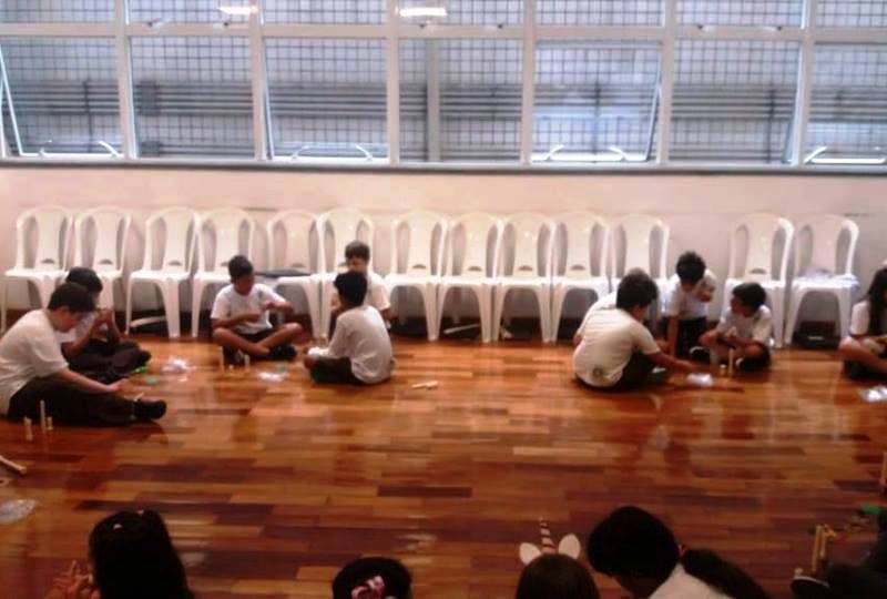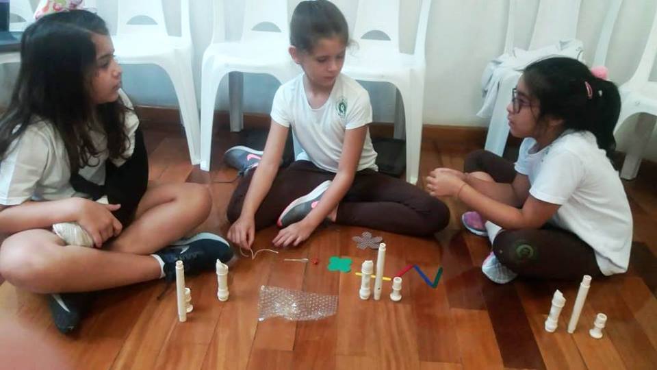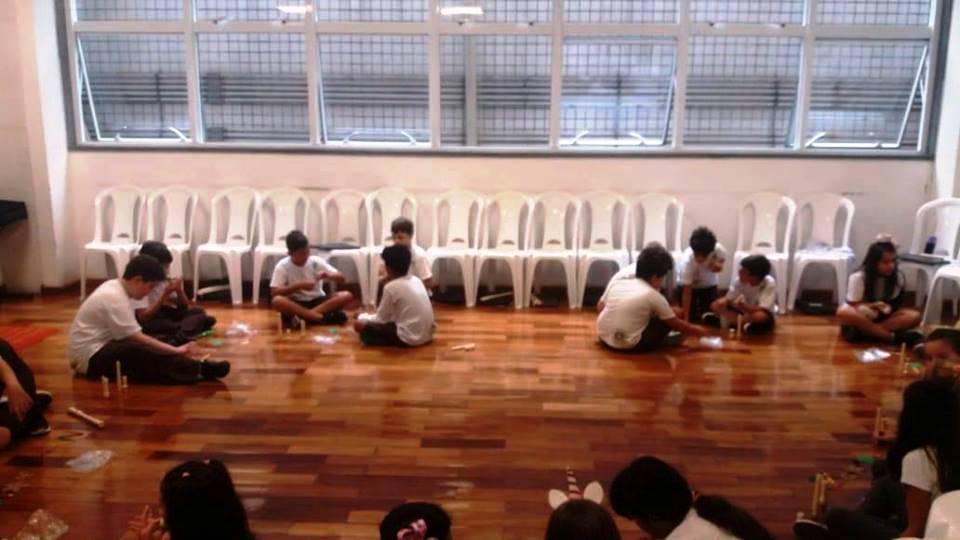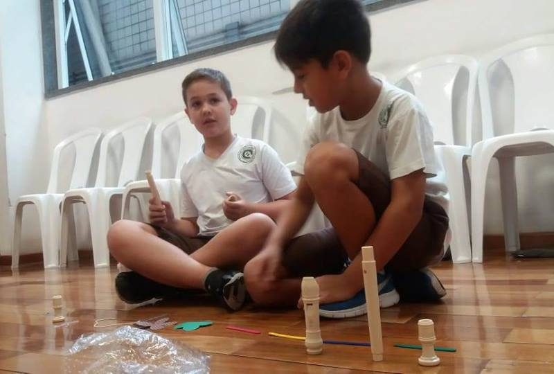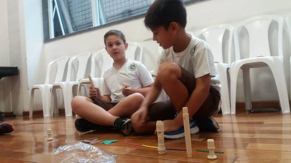 Os alunos do 4º ano iniciaram seu aprendizado da flauta doce soprano germânica. Nos primeiros contatos com a atividade, eles apreciaram os sons do instrumento usado e os sons do corpo. E, então, desenvolveram um trabalho, usando o lado criativo e a sensibilidade para formarem uma partitura não convencional, representada por vários formatos de papéis e por alguns objetos, e, assim, criaram sua paisagem e uma história sonora. A aula tornou-se divertida, prazerosa, e houve muito aprendizado. No final, todos apresentaram sua criação. Professora Dâmaris.